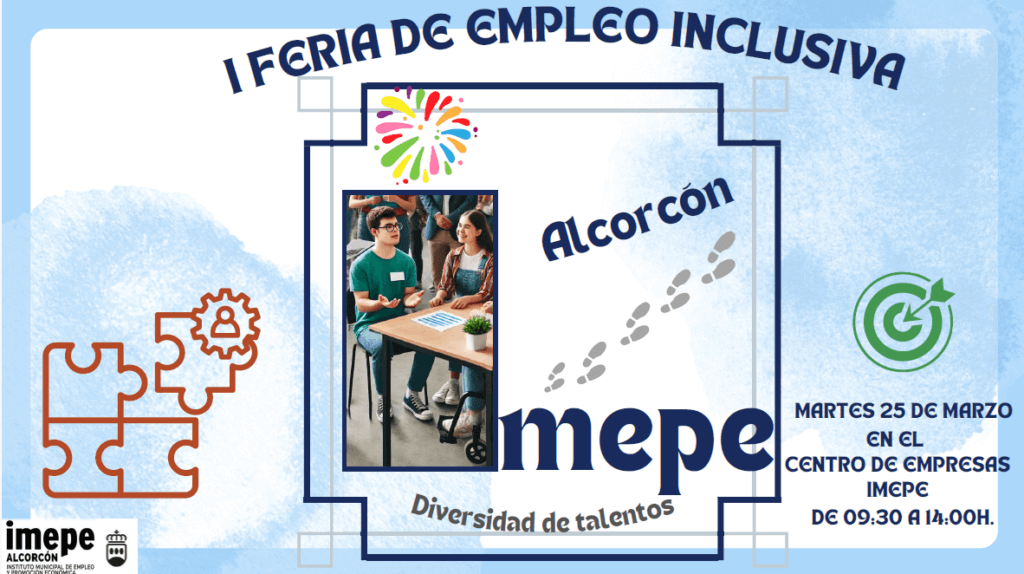 Mañana, martes 25 de marzo, el Centro de Empresas del Instituto Municipal de Empleo y Promoción Económica de Alcorcón (IMEPE) será el escenario de la I Feria de Empleo Inclusiva, un evento dirigido a personas con discapacidad intelectual con el objetivo de facilitar su acceso al mercado laboral.